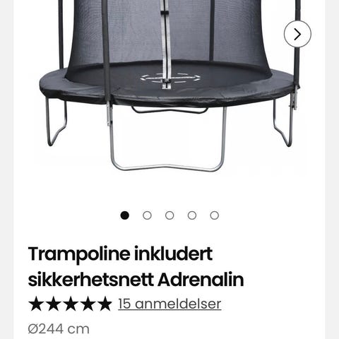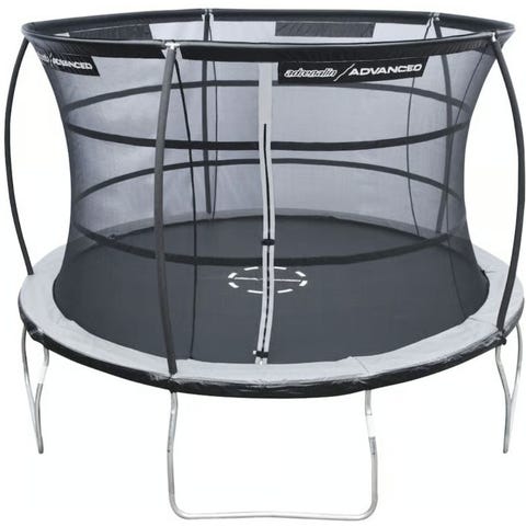 Trampoline med rund hoppeflate og sikkerhetsnett rundt hele trampolinen. Nettet er festet til buede stolper som går over trampolinen for økt innelukking. Det følger med stige for enkel adkomst. Trampolinen er egnet for bruk i hage eller på annet egnet uteområde. Stålramme og ben gir stabilitet, mens sikkerhetsnettet bidrar til å hindre fall utenfor hoppeflaten.