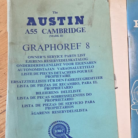 Austin A40 A50/55, A70 ,A90,BMC Mini, originale delekataloger fra bilverksted.