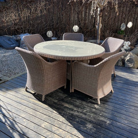 Stilig og solid hagemøbelsett seles billig! Spisebord + 4 stoler