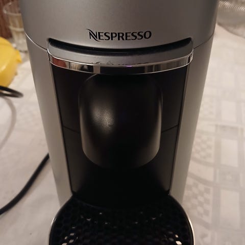 Modellen heter: NESPRESSO Vertuo Next kapselmaskin fra DeLonghi® (grå)
