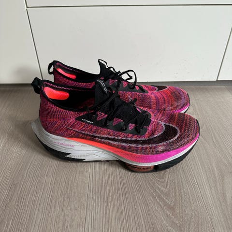 Første generasjon av Nike Zoom Alphafly Next% løpesko i størrelse 46.