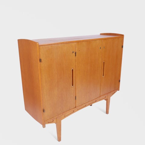 Et smykke av et skap / skatoll / skjenk uført i flammebjørk.
