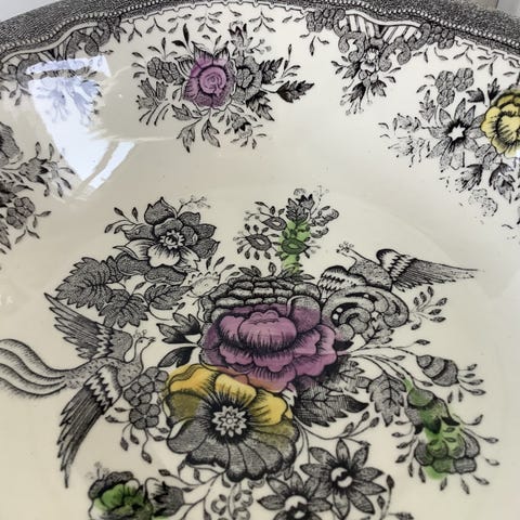 3 stk middagstallerken i grønn fasan, fin stand. Noe Bleiket. Ikke knast eller krakelering, men noen få "nupper" i glasssur.