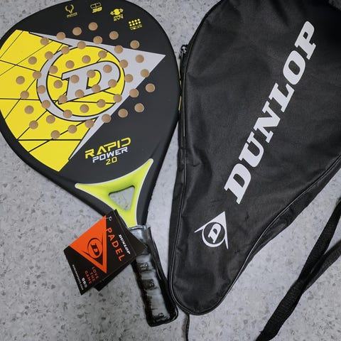 Ubrukt Dunlop Omega Tour padelracket i svart og grønn farge selges.