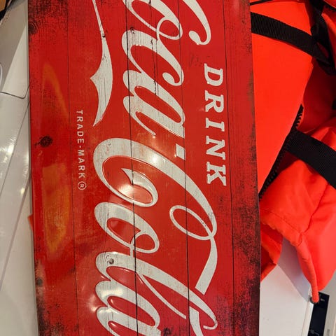 Selge ett coca cola lysskilt fra en coca cola kjøleskap ,den bakplatte er hjemme laget for oppheng på vegn.