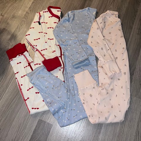 5 pysjamaser og 2 singletter. Fra Lindex og H&M.