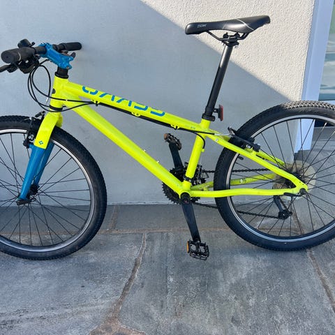 Gekko 24" barnesykkel i blå og grønn farge til salgs.Sykkelen har 24-tommers hjul som passer til større barn. Rammen er tilpasset barn 10-12 år gamle. Modellen har dempegaffel foran, flat styretype og standard barnesete. Utstyrt med gir og felgbremser. Egner seg til sykling på asfalt, grusveier og lette stier.