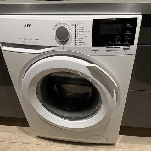 God vaskmaskin i god stand og fullt funksjonell fra AEG-rammen, godt alternativ hvis du vil vaske til 8kg klær raskt og på beste måte.