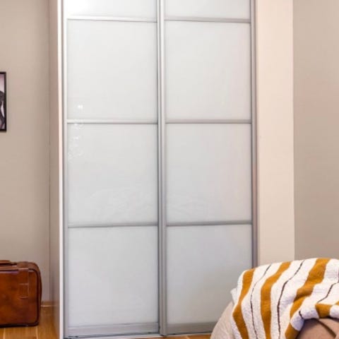 Dørene er 100cm bred, og bredde på topp og bunnskinnen er 195cm