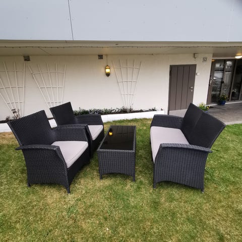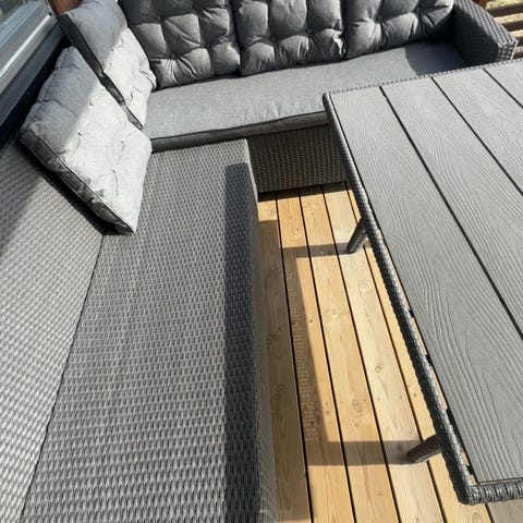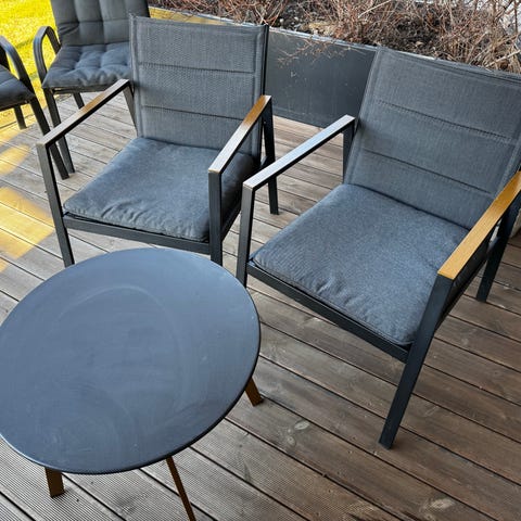 Sofa og stol, og bord med glassplate. Brukt, mye bruk igjen.