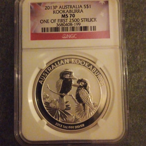 Australia 1 dollar sølvmynt med dragemotiv, år 2000. Mynten er preget i 1 oz .999 sølv og er innkapslet i en NGC-holder med grad MS 69. Forsiden viser portrett av Elizabeth II med påskriften «Elizabeth II Australia 1 Dollar». Baksiden viser en drage med årstallet 2000 og påskriften «1 oz .999 silver». Egner seg som samlermynt eller til investering i sølv.