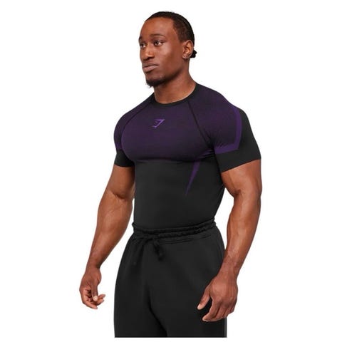 Model: Gymshark Onyx 5.0 Seamless T-Shirt - Black/Athletic Purple
