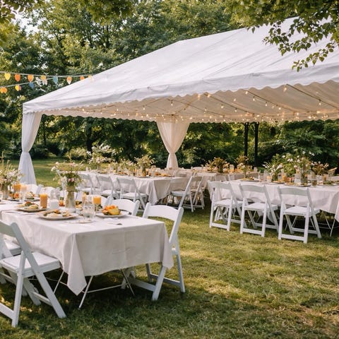 Vi tilbyr partytelt, bord, stoler og utstyr til både små og store arrangementer.