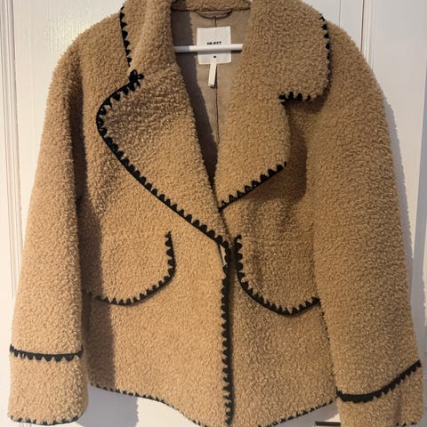 JDY ytterjakke for dame i størrelse XL. Jakken er beige i polyester med myk, teksturert overflate og kontrastdetaljer i mørk farge langs sømmene. Den har krage, glidelåslukking foran og stikklommer i sidene. Innsiden har glatt fôr for økt komfort. Passer som lett ytterjakke i overgangssesonger. Brukt 1 gang. Tilsalgs kr 350,-.