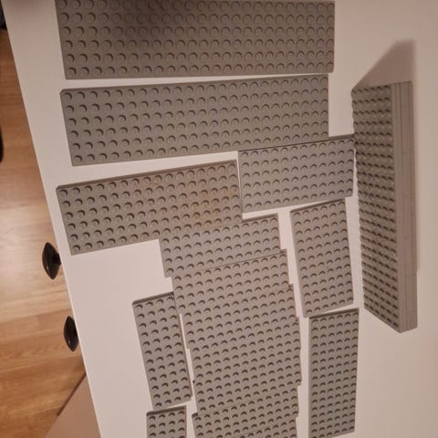 5 stk lego baseplater. 4stk. 16×32. 1stk 16×16 grønn plate har litt farge forskjell. Men hele og fine plater kjøp gjerne enkeltplater om du ønsker
