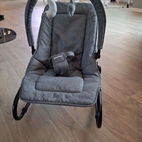 Vippestol fra Beemoo. Perfekt når du vil ha hendene frie til annet, samtidig som barnet ditt hviler eller leker trygt.