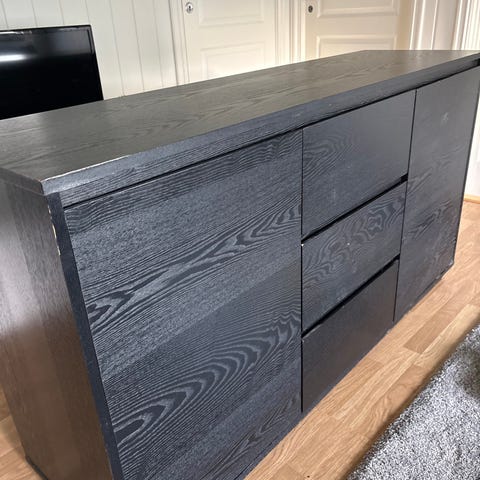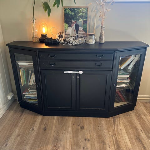 Skjenk med to høyskap med lyshylle til å montere over skjenk.