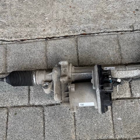 BMW E30 styresnekke / tannstang med servo. Plukket av 1992 318i cab. Må overhales pga lekkasjer, pakningssett medfølger.
