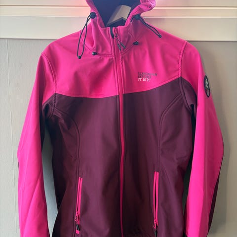 Pen, lite brukt softshelljakke i rød/rosa farge fra Swedemount, med 2 glidelåslommer, selges kr 150.