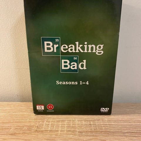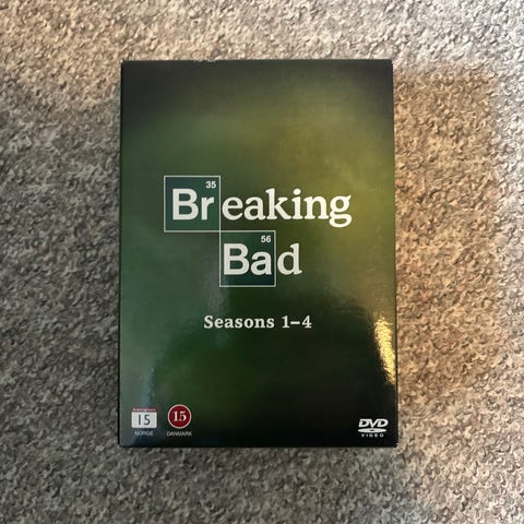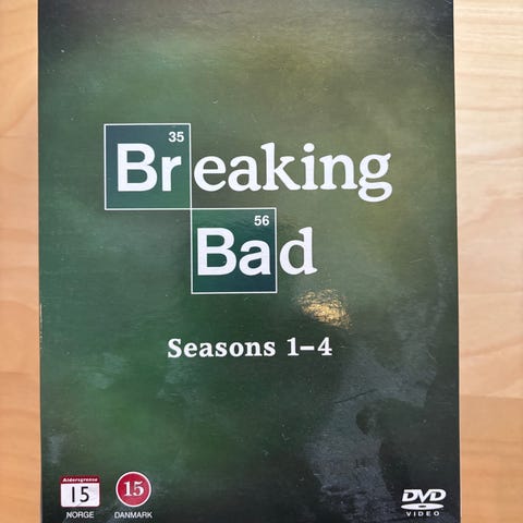 Breaking Bad DVD samleboks med sesong 1, 2, 3 og 4. Inneholder fire separate DVD-utgivelser av TV-serien, hver sesong i egen eske med omslag.