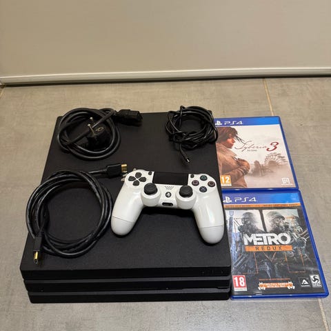 Sony Playstation 4 konsoll med 2 stk. trådløs kontroller, kontroller lader stand og tre spill i eske: God of War, Red Dead Redemption 2 og FIFA 19. Konsollen er egnet for gaming, film og underholdning, og kan kobles til TV via HDMI. Kontrolleren brukes trådløst og lades via kabel. Dette er en standard PS4-modell med fysisk spillstøtte for Blu-ray-plater.