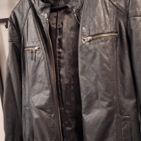 Grå skinnjakke. Ca str 40-42. Lite brukt. Sender med posten og bruker vipps.
