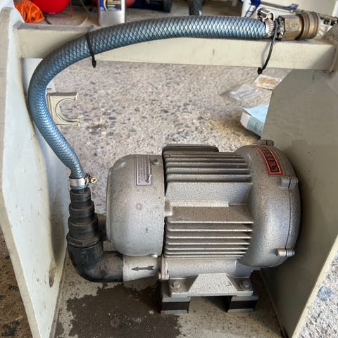 Mecman hydraulikkaggregat med elektrisk motor og tilkoblede slanger.