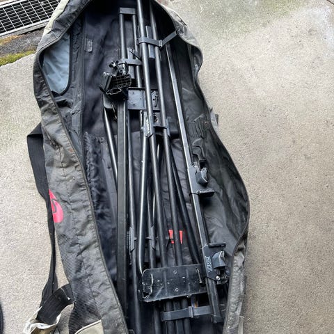 Sykkelstativ plass til tre sykler. Mulighet til å tilte den, slik at man kommer inn i bagasjen uten å måtte ta av syklene. Brukt 2 sesonger.