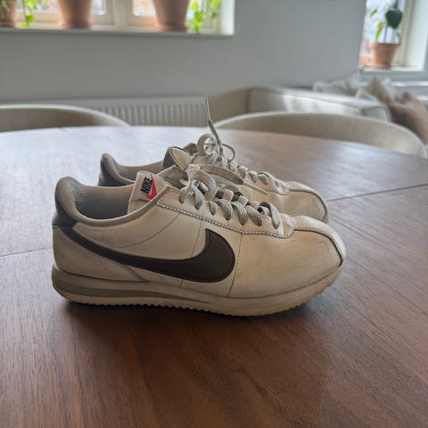 Nike Huarache joggesko i størrelse 37,5. Modellen er i hovedsak hvit med lyse detaljer. Skoene har overdel i tekstil og syntetisk materiale, med snøring foran og kraftig såle i gummi. Passer som hverdagssko eller til lett trening og fritidsbruk.