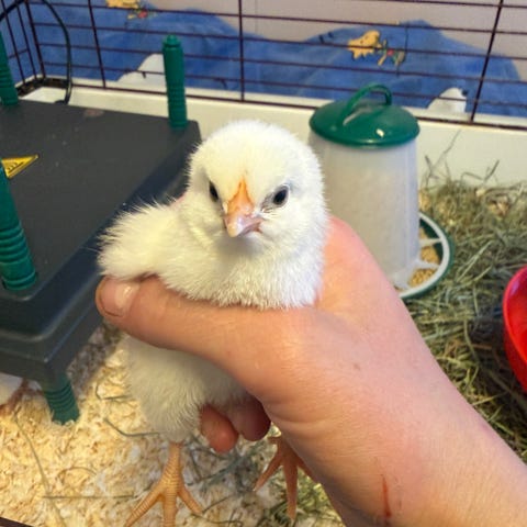 Uke 14 klekker vi 11 renrasede lys sussex kyllinger, og en sussex og brun lohman mix.