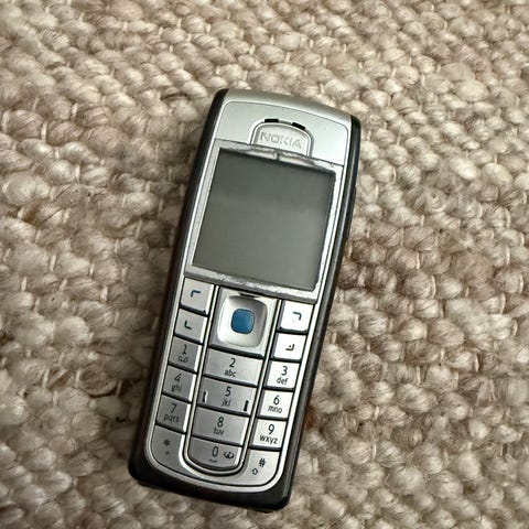Nokia mobiltelefon i klassisk utforming med fysisk tastatur og liten skjerm. Enheten har uttrekkbar antenne og bakside med klistremerke med alarmnumre. Passer som enkel mobiltelefon til samtaler og SMS, eller som samlerobjekt for eldre mobilmodeller. Farge: svart med sølvfarget frontpanel.