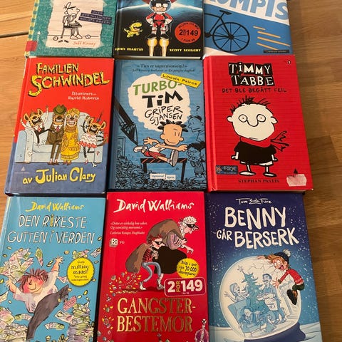 Alle tre bøker er på norsk og egner seg som lesestoff for barn i skolealder som liker humor og illustrerte fortellinger.