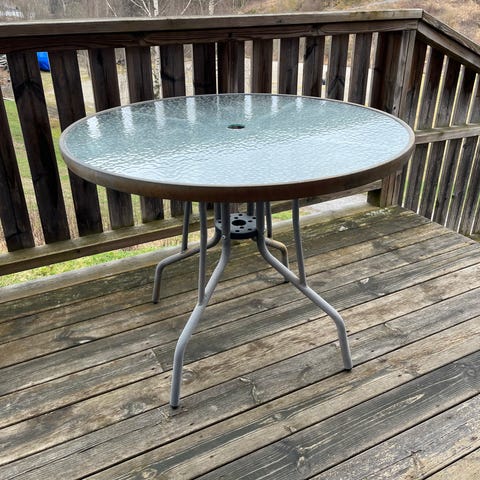 Ukjent merke ovalt hagebord glass metall grå