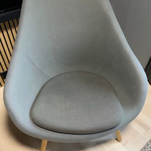 Selger 4stk Hay «about a chair» stoler i grå med sorte bein. Ingen synlig bruksmerker foruten en hvit «flekk» på en av stolene. Svært lite brukt og derfor i god stand.
