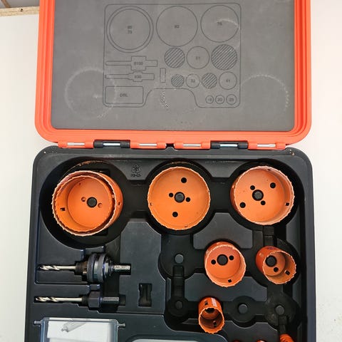 Så og si ubrukt høykvalitets Hitachi hullsagsett i bimetall selges. Kun brukt tre av koppene til litt gips. Selges som nytt!