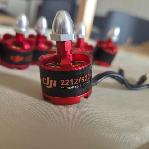 Børsteløse motorer til drone i rød farge. Små lettvektsmotorer egnet for bygging eller reparasjon av mindre droner eller multirotorer. Leveres med ledninger ferdig loddet på motorene og aksling som passer til små propeller. Passer for hobbybrukere som trenger kompakte motorer til lette droneprosjekter.