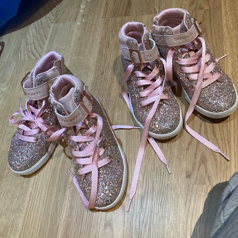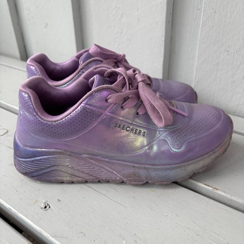 Skechers joggesko for jente i størrelse 35. Skoene er rosa med hvit såle og lisser. Overdelen er i tekstil og syntetisk materiale med pustende meshdetaljer. Modellen har polstret kant og pløse for økt komfort, samt kraftig yttersåle som gir godt grep ved hverdagsbruk og fritidsaktiviteter.