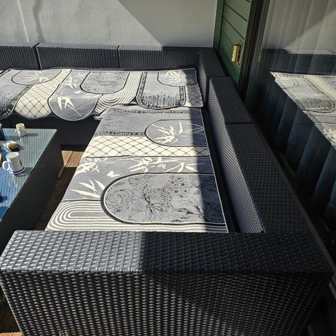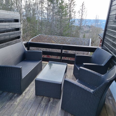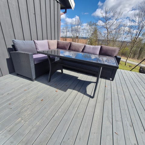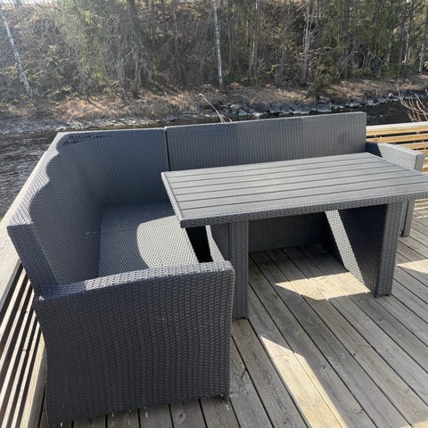 Ukjent merke hjørnesofa og bord utemøbler rotting grå
