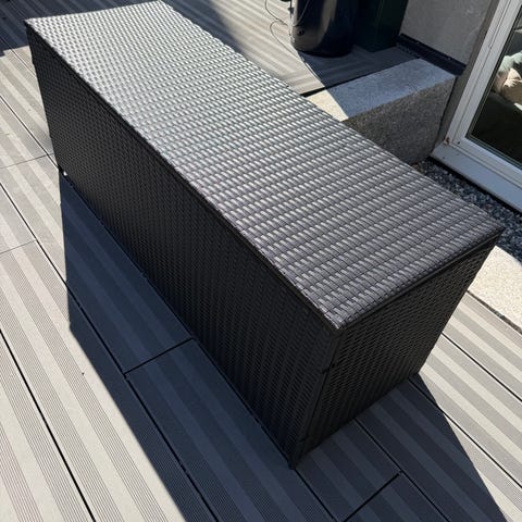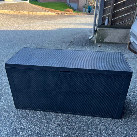 Kassen er solid og holder puter og madrasser tørre gjennom sesongen.