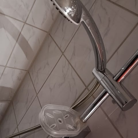 Vi har også dusjforheng med justerbarstang til enkel og fleksibelt oppheng dersom du ønsker det også.