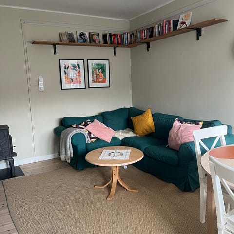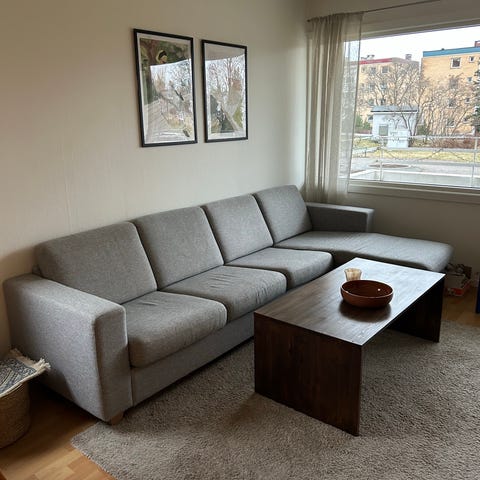 Pent brukt sofa. Kan kjøpe nye trekk på IKEA. To små rifter som ikke er særlig synlig. Sjeselongen kan settes på begge sidene.