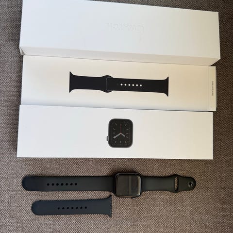 Apple Watch Series 10 42mm GPS inkludert 2 original Apple reimer selges for 3900kr. Kjøpt i mai 2025. Liten ripe i skjermen. Ladekabel følger med.