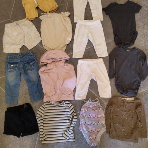 kjempe fin klespakke, det er en body som har noen flekker på seg, og den får man gratis det er (fly bodyen).