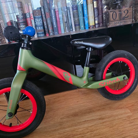Meget bra første sykkel! Takket være denne tok det 10 minutter før sønnen vår lærte seg å sykle med pedaler.