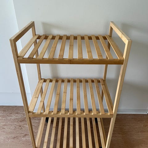 Hyllebordet har en bitteliten krumning og selges derfor rimelig.
