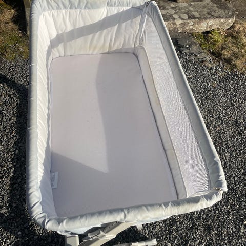 Kan bringe til Alti senteret, Krokstadelva, etter avtale. Fin seng med mye bruk igjen. Madrassen har litt merker etter bruk, ellers ikke noe galt. Kan justeres i høyden. Lengde 99 bredde 52. En ende kan valgfritt tas ned så det blir bedside - crib. På hjul.