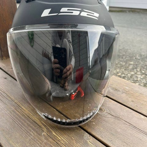 LS2 MC-hjelm i helmodell med integrert solvisir. Hjelmen er svart med matt/glanset finish og har justerbar toppskjerm og ventilasjonsåpninger foran, oppå og bak. Innvendig polstring ser ut til å være hel og gir god dekning rundt hode og hake. Hjelmen passer til motorsykkelbruk, snøscooter og firehjulig. Pris kan diskuteres med kjapp avgjørelse.Hjelmen er i XXL