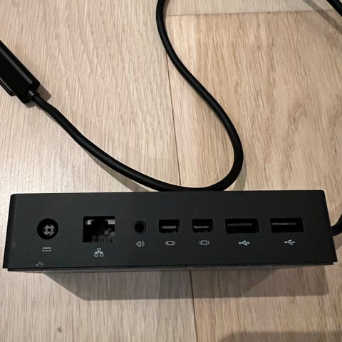 Dokkingstasjon til Microsoft surface i svart farge. Enheten har flere tilkoblingsporter, blant annet USB-porter og nettverksport (RJ45), samt strømtilkobling. Kabelen avsluttes i en proprietær kontakt for tilkobling til kompatibel bærbar . Egnet som adapter/dokkingstasjon for tilkobling av eksternt utstyr som mus, tastatur, nettverk og andre USB-enheter til kompatibel datamaskin.