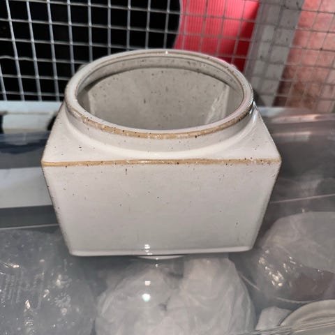 Blomsterpotte hvit med brun bunn keramikk