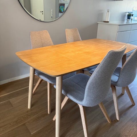 Jeg selger et nesten nytt sett med bord og fire stoler, brukt i to uker.
